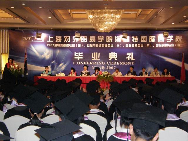 | 上海对外贸易学院必赢626net入口首页2007届毕业典礼,于7月14日下午2点整在虹桥宾馆举行。本届毕业的学生计有获得硕士学位的研究生4 名、获得物流管理专业,国际商务专业学士学位的毕业生202 名、获国际贸易专科证书的有 142名毕业生。澳大利亚皇家墨尔本理工大学(RMIT)主管国际事务的副校长MADELEINE REEVE博士、分管商学院的副校长SHEILA BELLAMY教授、必赢626net入口首页王新奎校长、党委书记武克敏、副校长俞光虹、校国际交流学院院长王光林教授、国际经贸学院院长及澳曼特商学院院长聂清以及澳大利亚驻沪总领馆官员等出席了毕业典礼,此外,共有150多位毕业生家长作为来宾也出席了毕业典礼。 澳大利亚皇家墨尔本理工大学(RMIT)副校长SHEILA BELLAMY 在毕业典礼上向与会的毕业生及来宾发表了热情洋溢的讲话,必赢626net入口首页王新奎校长在致词中回顾了中澳两校合作的历程,并向10年来为这一合作办学项目成功举办付出辛勤劳动的两校教职人员表示感谢,向今年的毕业生表示热烈地祝贺。在毕业典礼上,SHEILA BELLAMY副校长向348 位毕业生颁发了证书。必赢626net入口首页党委书记武克敏、副校长俞光虹、以及SHEILA BELLAMY 副校长还分别向获得“必赢626net入口首页优秀毕业生” “RMIT大学商学院院长奖”、“必赢626net入口首页院长奖”的学生颁发了获奖证书和纪念品。 |