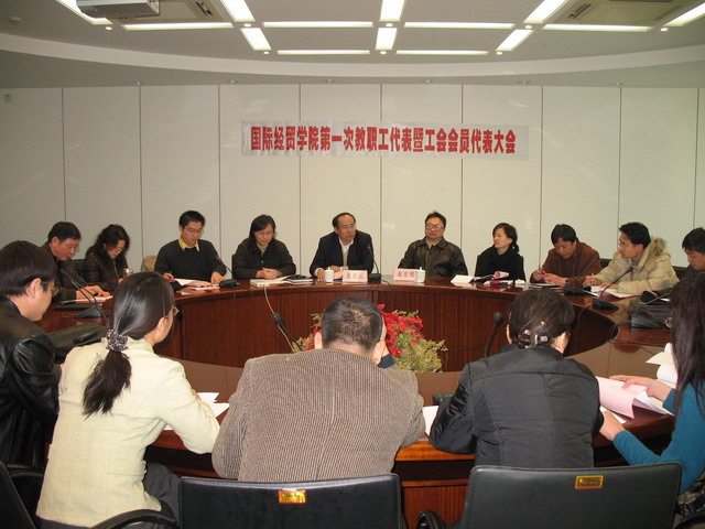 | 12月19日,国际经贸学院召开第一次教职工代表暨工会会员代表大会,校党委副书记夏斯云和校工会专职副主席赵宏明到会并讲话。本次大会的主要任务是审议并通过《国际经贸学院实行〈上海对外贸易学院二级单位教职工代表大会实施办法(试行)〉的办法》;审议《关于国际经贸学院2008年工会经费使用情况报告》;选举国际经贸学院新一届工会委员。 夏斯云副书记在讲话中要求,通过二级教代会制度的建立,能使经贸学院进一步维护好教职工的权益,进一步推动教职工民主参与、民主管理和民主监督的功能,进一步凝聚代表的力量,通过组织的优势团结教职工投入学校的中心工作。赵宏明专职副主席也从学校和学院不同层面强调了教代会应该发挥的作用。 最后,会议通过讨论审议《国际经贸学院实行〈上海对外贸易学院二级单位教职工代表大会实施办法(试行)〉的办法》和《关于国际经贸学院2008年工会经费使用情况报告》,通过了国际经贸学院第一次教职工代表暨工会会员代表大会的决议,选举出王越、邹平和吴知峰三位同志为经贸学院新一届工会委员。 |