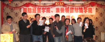 | 1月14日晚,国际经贸学院、必赢626net入口首页举行2009年新春团拜会,校长王新奎、校党委书记武克敏、副校长徐小薇出席了团拜会。王新奎校长在会上致新春贺词,他对经贸学院一年来的工作,尤其是在学校学科建设、二级学院调整工作中,经贸学院所做的工作给予了充分的肯定,并代表校领导祝经贸学院在落实学校学科发展规划、执行学校学科发展配套文件工作中取得更大的成绩,祝福经贸学院全体教职工新年愉快,身体健康,工作进步! 经贸学院聂清院长在会上致祝酒词,对校领导、各相关部门的领导对经贸学院工作的帮助和支持表示感谢,对全院教职工及在经贸学院任教教师一年来的辛勤工作表示慰问和感谢。并提议大家为学院美好的明天干杯! 团拜会由三位新进辅导员宋罡、张华、郭彦辉主持,在宋罡老师和郭彦辉老师的一曲《东方之珠》歌声中拉开序幕,激情慷慨的演唱激起现场观众的热烈喝彩。各专业老师都精心准备了表演节目,由聂清院长、朱钟棣教授、高运胜、史龙祥等国贸专业的老师为大家带来加拿大名歌《红河谷》,赢得了阵阵喝彩,大家齐声高唱,将团拜会的气氛推向了最高潮。国投专业刘静波、邱强老师等4位老师的《三句半》向大家传递了新年的美好祝福。 近三个小时的团拜会在国商专业张少萱、景瑞琴等老师带来的情歌对唱——《心雨》中落下帷幕。整个团拜会成了欢乐的海洋,场面温馨、气氛热烈,所准备的31个不同奖项最终也都花落有主。 经贸学院全体教职员工、部分在经贸学院任课的双肩挑教师、澳曼特任课教师近百余人出席了团拜会。 |