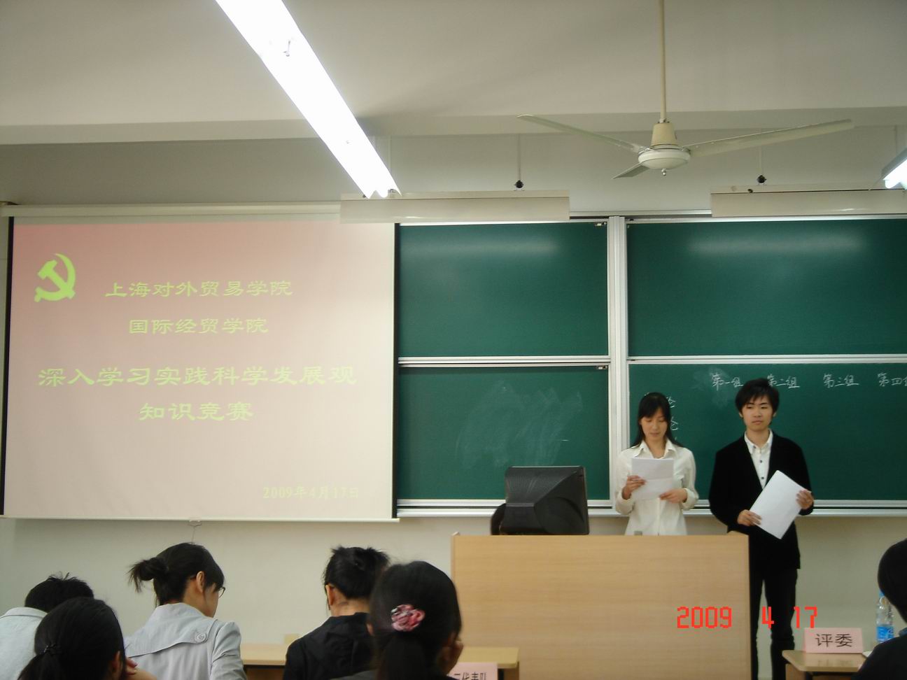 | 4月17日下午13:00,经贸学院深入学习实践科学发展观知识竞赛在教学楼B401举行。 此次知识竞赛由经贸党总支主办,经贸分团委组织部承办,旨在以理论结合竞赛的方式,丰富“深入学习实践科学发展观”内涵,加强理论知识学习,提升我院党团员思想政治素质以及党性修养。 参加知识竞赛的共有四支队伍,他们是经贸08研究生支部代表队、06支部代表队、07支部代表队及08支部代表队。大赛每一轮的比赛项目和规则均经过精心设计。竞赛包括五个环节:闯关题、抢答题、快问快答、情景题和风险题。四支队伍全部以准确、流利的回答通过第一环节,赢来在场观众一片喝彩。接下来的环节中,各支队伍竞相角逐,比赛掀起了一轮又一轮高潮。 最终07支部代表队后来居上夺得桂冠,08研究生支部代表队以微弱的差距屈居第二。同时,由评委根据选手们的出色表现评选出08研究生代表队的何海文同学与07支部代表队的张菁同学荣获优秀个人奖。经贸学院深入学习实践科学发展观知识竞赛在全体高唱国歌声中落下帷幕。 |