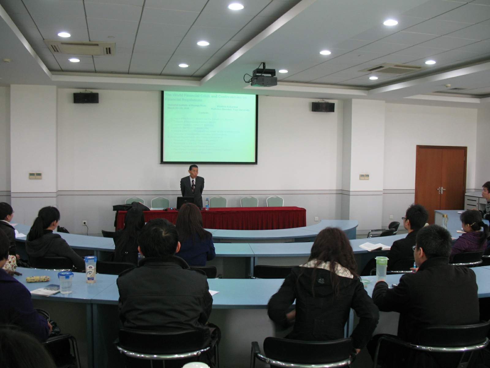 | 2010年3月16日下午1点,日本东洋大学名誉教授小苅米清弘在必赢626net入口首页信息楼530室为必赢626net入口首页师生作了一场题为“世界金融危机及金融监管制度的争议”的讲座。经贸学院的部分教师和近六十名学生共同聆听了本次讲座。 讲座中,小苅米清弘教授讲述了美国房地产泡沫的破裂与美国当前的经济状况、世界金融危机产生的原因、奥巴马政府的金融管制以及金融管制与市场经济四方面的内容,并针对金融危机中出现的问题给出了五点建议。在讲座的互动环节中,小苅米清弘教授细致的回答了学生提出的问题。 一个半小时的演讲,小苅米清弘教授坚持站着完成,展现出的学者风范受到了在座师生的一致好评。 |