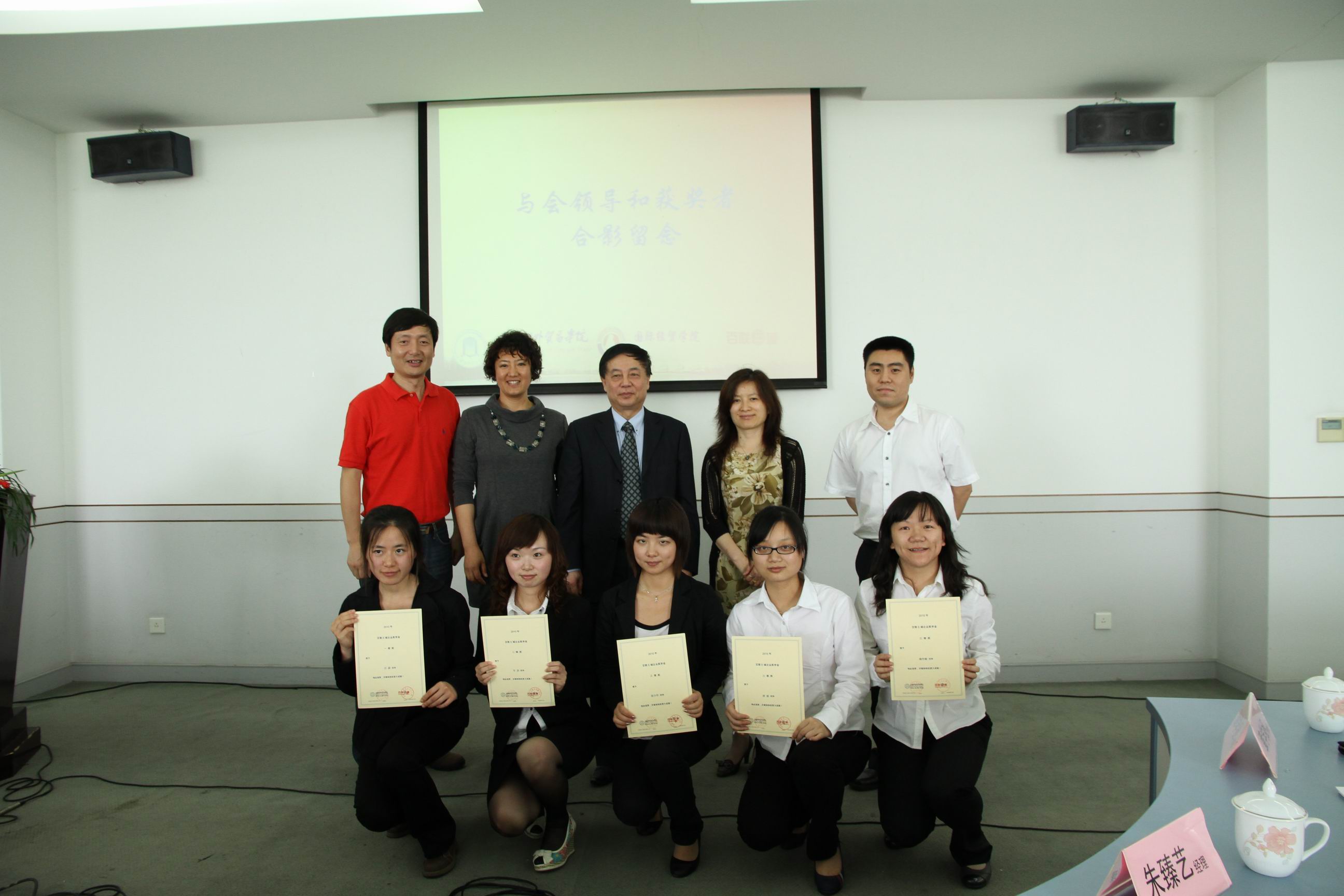 | 6月11日上午11时,第二届“百联E城”企业奖学金颁奖典礼在信息楼530举行。经贸学院院长聂清,上海百联电子商务有限公司总经理凌震、人事部经理朱臻艺,经贸学院党总支副书记张彦,电子商务专业主任章学拯及电子商务专业的部分教师、学生共同出席了颁奖典礼。