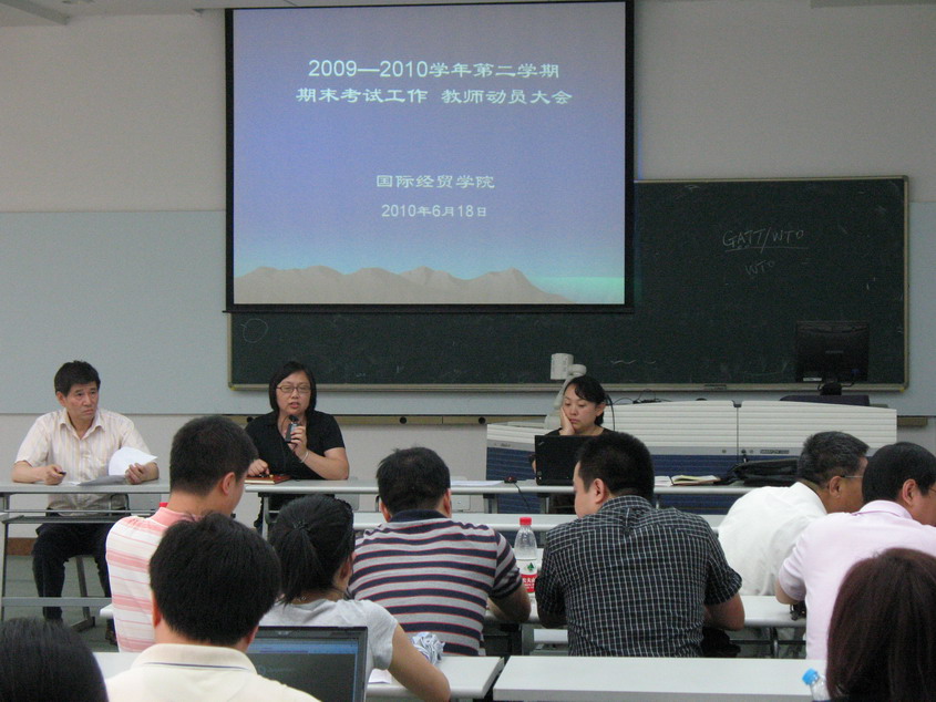 | 6月18日下午,经贸学院在信息楼532会议室召开了期末考试工作动员会。出席会议的有经贸学院总支书记王越、副院长张忠樑、总支副书记张彦、挂职副院长赵红军、院长助理金泉以及学院全体教职工。 会议由总支书记王越主持,院长助理金泉向全体教师介绍了学院的考试工作安排,对期末考试工作中的关键环节:出卷、监考过程、批卷、装订试卷等工作做了详细的布置,特别强调了在监考过程中的考前、考后试卷清点,考前清场,在批改试卷时仔细核对成绩和计算总评成绩,及时提交学生平时成绩和考试成绩等。希望大家共同努力,圆满完成本学期的期未考试工作。 张忠梁副院长在会上再次提示大家关注考试期间学校班车的调整时间和交通路况,以及强调了维护考场纪律。 会前,学院办公室已将本次考试安排,教师监考规定等相关文件装订成册,由每位教师签收。 |