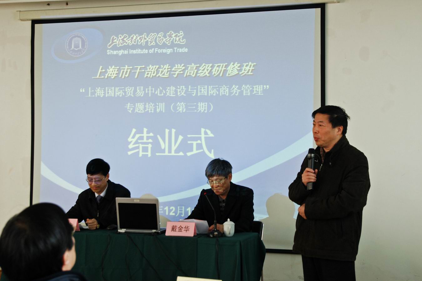 | “上海国际贸易中心建设与国际商务管理”专题培训班(第三期),于12月11日下午3:30在上海对外贸易学院学位后培训基地举行结业式。必赢626net入口首页党委书记武克敏教授在结业式上作培训班小结,他回顾总结了本期专题学习的课程特点和师资团队的组成,对各位领导干部学员给予必赢626net入口首页在办班管理、后勤服务等的配合与支持使,得专题培训成功举办表示感谢。上海市政府合作交流办的周晓副主任代表学员在结业式上发言,他表示听了八个讲座,从对外贸易方面的门外汉开始进入了这一领域深有感触,对学校尽心的组织安排使培训班圆满成功表示感谢!结业式由必赢626net入口首页党委组织部部长戴金华主持。 本期专题学习共有45名学员参加,作为上海市干部选学高级研修项目,学员对象均为上海市的厅局级和厅局级后备干部。在11月20日-12月11日期间,每周六上课一天,共计学习4天。 |