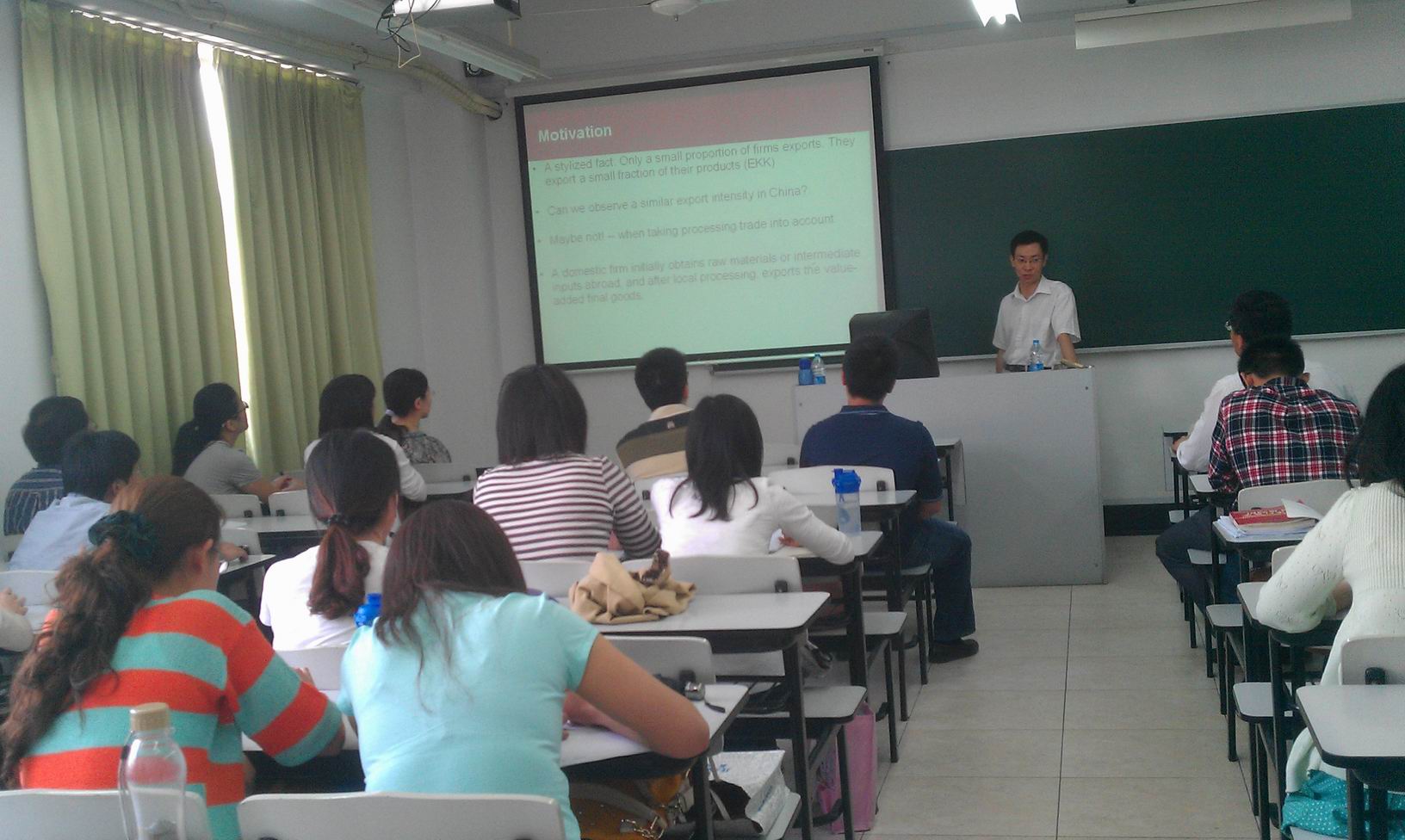 | 2012年5月21日上午10点,应必赢626net入口首页国际经贸研究所和国际经贸学院邀请,美国加利福尼亚大学戴维斯经济学博士、北京大学中国经济研究中心副教授余淼杰老师到必赢626net入口首页进行讲座。本次讲座由国际经贸研究所孙楚仁副研究员主持,经贸学院副院长赵红军、何欢浪等老师以及11级国贸研究生参加了此次讲座。 余淼杰副教授本次讲座的主题是贸易自由化对企业出口密度的影响。他和合作者田巍基于中国工业企业和中国海关进出口数据库匹配数据考察了中间品关税壁垒下降对企业出口密度的影响。通过对匹配数据进行统计分析,他们发现中国出口企业的出口密度呈U形分布,15%出口企业出口其产量的绝大部分。这种分布模式与国外出口企业只出口其产量的一小部分的模式不同。余淼杰博士认为,中间品贸易自由化对企业出口密度造成了很大的影响。为此,他们围绕中间品关税的下降对企业出口密度的影响在划分不同类型的进口企业、建立多种衡量中间品进口关税指标、控制企业的全要素生产率、经营年限、加成率等基础上进行了一系列严谨的实证分析。他们发现中间产品的自由化对中国企业的出口密度有显著影响。中间产品进口关税下降,企业的成本减少,产出增加,更有动力进行出口。 余淼杰副教授的论文在指标选取、测量方法、模型设定、计量方法选择和稳健分析等方面都十分严谨,让与会者受益匪浅。孙楚仁副研究员在讲座最后对讲座进行了总结。讲座在一片热烈掌声中结束。 |