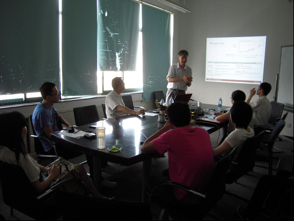 | 2012年6月13日上午九点,国际经贸学院外教Jonanthan教授在学院楼B406为必赢626net入口首页师生做了题为Poverty: What do we know? What can we do的讲座。此次讲座由国际经贸学院副院长赵红军教授主持,来自图书馆WTO资料中心的张立秋老师以及国际经贸学院研一、研二的同学聆听了此次讲座并共同参与了讨论。 Jonanthan教授的讲座围绕什么是贫穷、贫穷的衡量标准、怎样解决贫困以及如何实现联合国的千年发展目标展开。通过讲座,Jonanthan教授解释了不同人群的不同贫困程度,以及不同人群贫困的不同原因,并针对这些不同的贫困类型给出了相应的解决对策。Jonanthan教授结合他在越南、菲律宾等亚洲国家多年研究以及他在联合国、世界银行等国际组织进行咨询的经验分析到,要有效地解决全球的贫困问题,相应的政策类似可以包括增加经济增长、提供微观金融、社会基金、改善投资环境、改革税收和转移制度体系等六个方面。 Jonathan教授是美国萨福克大学经济系教授,是世界银行、联合国千年发展目标项目组的咨询顾问,曾经在美国哈佛大学、西北大学、日本、非洲、亚洲等地从事过多年的咨询和研究工作,是国际上著名的《贫穷与不平等手册》的撰写人。此次Johnathan教授应经贸学院邀请,与赵红军教授为国贸、金融实验班本科生共同讲授Intermediate Microeconomics课程。 |