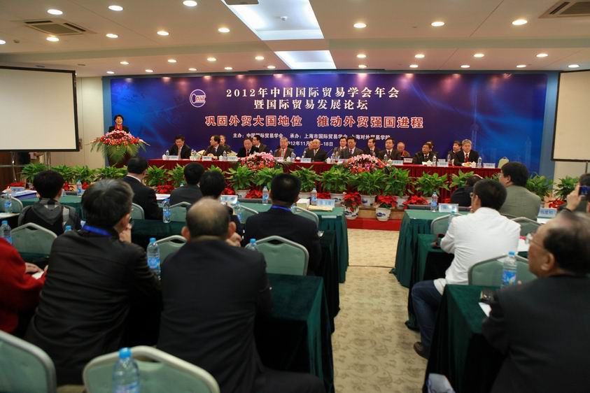 | 2012年11月17日上午8点30分,2012中国国际贸易学会年会暨国际贸易发展论坛,在上海对外贸易学院松江校区信息楼526报告厅隆重召开,本次论坛的主题是“巩固外贸大国地位,推动外贸强国进程”。开幕式由中国国际贸易学会副会长兼秘书长刘宝荣主持,中国国际贸易学会王俊文会长、上海市政府副秘书长肖贵玉、上海市商务委员会副主任张新生、上海对外贸易学院党委书记武克敏、商务部部长助理俞建华等先后作大会开幕致辞。上海市政协副主席、WTO事务中心总裁王新奎、中共中央政策研究室经济局局长李连仲分别作论坛大会的专题演讲。来自南开大学、中国社会科学院、对外经贸大学、厦门大学、上海财经大学、湖南大学、上海对外贸易学院、中南财经政法大学等全国各地高校、科研院所的近200名专家学者参加了本次论坛。 |