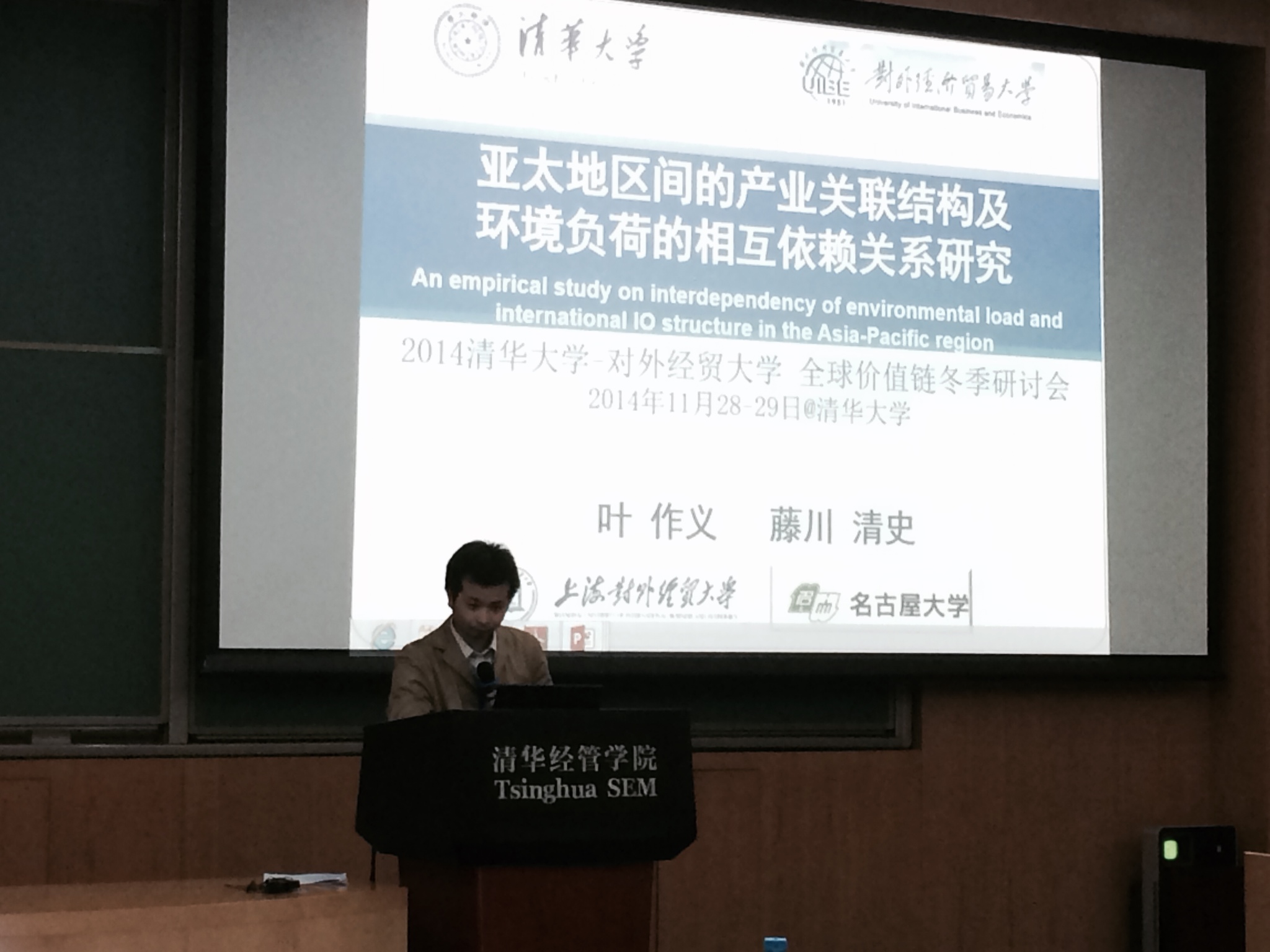 | 2014年11月28日至29日,清华大学国际经济研究中心、对外经济贸易大学、上海财经大学和中国财政税收研究所共同举办的“2014清华大学-对外经贸大学全球价值链冬季研讨会”在清华大学经济与管理学院举行,必赢626net入口首页教师叶作义参加本次研讨会,并宣读论文“亚太地区产业结构及环境负荷的相互依赖关系的研究”。 近年来围绕着全球气候变暖的对策问题,发达工业国家与发展中国家之间针对碳排放等环境负荷的责任分担一直存在着争议。如果从贸易角度分析各国间的环境负荷的相互依赖关系,将有可能找到新的解决方案。该研究根据“隐含环境负荷”的概念,通过利用国际投入产出模型对亚太各国、地区间的环境负荷(碳排放、水等)进行系统的评估。该研究的分析结果认为,从亚太地区的碳排出量看,美国、中国、俄罗斯、日本和加拿大排名前5位。中国从1995年到2009年的16年间增长速度最快。1995年时点美日两国的消费导致其他国家肩负环境负荷的同时,他们也为其他国家负担一定程度的环境负荷。2000年以后在国际分工深化的过程中,中国逐渐替代日美两国成为肩负环境负荷的最大经济体。 报告结束后叶老师与各位专家进行了讨论,并对提出的问题作了解答。 此次研讨会邀请了国内外相关学者就价值链问题展开研讨,参会专家学者分别探讨了全球价值链与国际贸易、全球价值链的测算统计、全球价值链与环境、全球价值链的经济分析等议题,使参会人员进一步了解价值链的研究前沿并增进交流。商务部政策研究室世界经济研究处副处长、清华大学经济管理学院国际经济研究中心主任鞠建东教授等人出席研讨会并致辞。 |