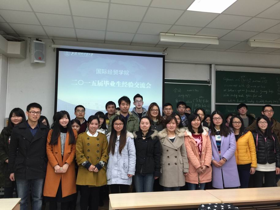 | 3月 9日中午12点30,国际经贸学院2015届硕士毕业生经验交流会在学思楼B106举行。研究生辅导员程琳老师和2015届8位优秀毕业生受邀出席,2013和2014级近80位研究生积极参与了本次分享交流活动。 交流会上,程琳老师首先就本届毕业生的总体就业情况作了介绍,并向大家介绍了出席交流会的8位优秀毕业生基本情况。随后各位毕业生代表依次上台结合自身实际,分享了关于学业、实习和求职过程中的点滴心得。内容涉及加强专业和英语学习的重要性,如何做好科研,合理安排毕业论文撰写计划的必要性,还有求职过程中如何准确定位,树立自信,对应聘企业、职位情况的了解、如何寻找实习途径等等“面经”和技能。还有一位毕业生代表因工作无法赶到现场,特意做了PPT,与在场同学分享了她的学习感悟。在之后的Q&A环节中,同学们纷纷就感兴趣的话题与毕业生们积极互动,深入交流,并互留了联系方式。 本次活动由院研究生会组织,作为经贸学院每年毕业生教育的传统活动,旨在搭建各级研究生的交流平台,通过本届毕业生学业求职经验的分享,使在校研究生对自身学业及以后发展有启发受益,形成了良好的传承文化。 |