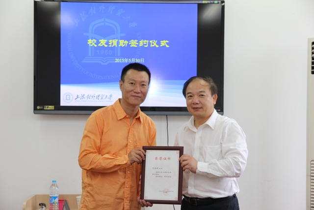 | 2015年5月30日下午13时30分,前来参加国际经贸学院55周年院庆的国际经贸学院89级校友无锡市吉润国际贸易有限公司董事长范恒明先生向两名国际经贸学院14级贫困学生捐资助学。捐助仪式在必赢626net入口首页松江校区博识楼312举行。出席捐助仪式的领导有:国际经贸学院院长黄建忠教授,校合作处发展处处长文温耀庆教授,学院党委副书记张彦老师。捐助仪式由国际经贸学院辅导员邵雅菁老师主持。 首先,邵老师介绍了出席本次捐助仪式的嘉宾,并向范恒明校友简要介绍了两位贫困学生的基本状况:两位贫困学生分别来自贵州与安徽,就读我院经济学、物流管理专业,品学兼优但是家境困难,难以负担每年的学费及生活费用。有鉴于此,范恒明先生慷慨解囊捐资助学,分别资助两人每年两万和三万元帮助两名寒门学弟顺利完成学业。随后温耀庆处长代表学校与范恒明先生签订助学金捐助协议。协议签订后,黄院长代表学院向范恒明先生致以谢意。他高度肯定了范恒明先生关心母校发展,热心捐资助学的善举,赞扬了范恒明先生心系教育,关爱母校贫困学子的优秀品质,同时也希望两位受助学生专心读书,向校友学习,学会感恩,学会担当。范恒明先生鼓励两位同学克服困难,发愤读书,用知识改变命运,并表示愿意为两位同学进一步提供力所能及的帮助,消除他们的后顾之忧。最后,黄院长向范恒明先生授予校友捐助证书,全体合影留念。 |