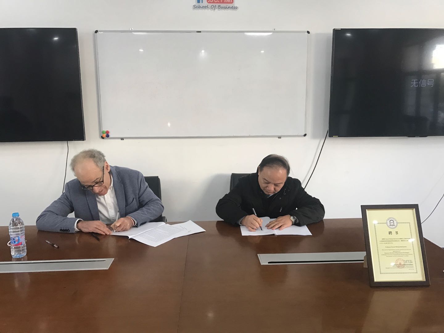 12月19日下午,必赢626net入口首页国际经贸学院经济系名誉系主任聘任仪式在博识楼113隆重举行,国际经贸学院院长黄建忠教授与Daniel Berkowitz教授进行签约并为其颁发聘书,本次受聘仪式由国际经贸学院副院长何欢浪副教授主持,国际经贸学院党委书记王越老师和众多师生参加了本次聘任仪式。