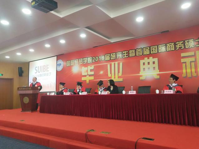 4月10日上午,国际经贸学院2018届研究生暨首届国际商务硕士(MIB)毕业典礼在信息楼526隆重举行。国际经贸学院领导、学术委员会教授、统计与信息学院院长、学院国际商务专业硕士教育中心、企业导师代表和研究生导师参加毕业典礼。典礼由邵雅菁副书记主持,120多名毕业生和学生家长代表一起参加了典礼。