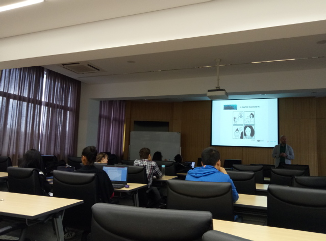 上午的讲座围绕国际商务环境问题展开,主要对三个问题进行深入的分析。第一、关于全球贸易环境的主要趋势,第二、关于风险的主要类型和来源,第三、关于国际贸易的含义。讲座现场,Matevz与学生分享了斯洛文尼亚和新西兰等国家的相关资料,风趣幽默的语言、引人入胜的例子使学生反应热烈。