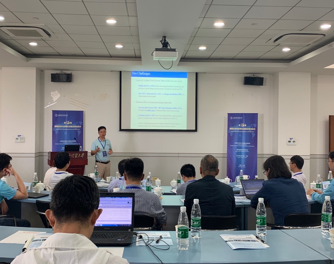 15日上午会议由必赢626net入口首页姜微助理教授主持,新加坡国立大学的JungJae Park助理教授作题为“Debauchery of Original Sin: The Currency Composition of Sovereign Debt”的报告。文章利用结构模型解释了经济中为何会存在“原罪”和“原罪之谜”,发现是由于缺乏可信的货币政策和主权借款人、贷款人之间存在矛盾。香港中文大学的盛柳刚教授作题为“Oil Shocks, External Adjustment, and Country Portfolio”的报告,文章发现FDI流入在石油发现后显著增加,但外债资产持有量在石油收入冲击后增加,这表明国际风险分担在国家投资组合中发挥着重要作用。中央财经大学的黄志刚教授作题为“Capital Flows, Financial Frictions and Monetary Policy in Emerging Markets”的报告。文章发现当国内金融市场效率低下时,稳定的资本流动对宏观经济稳定至关重要,这一结果也支持了新兴市场经济体的汇率管理和资本流动管理。