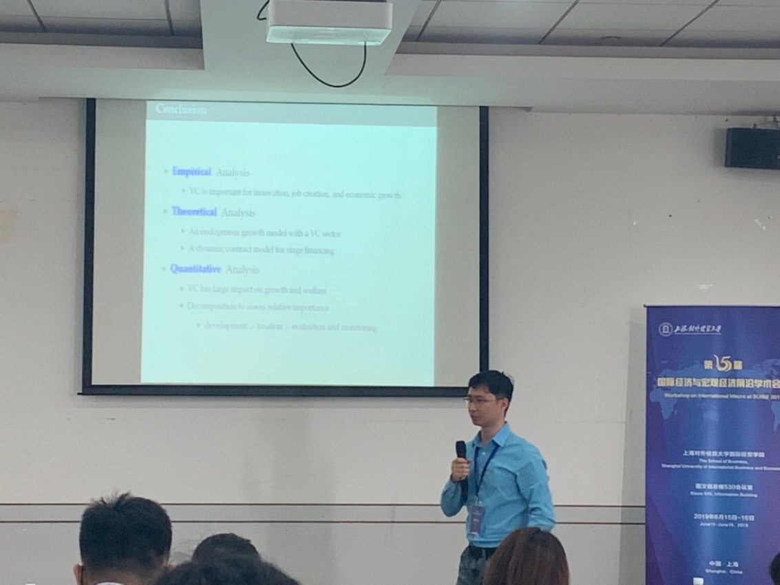 16日上午的会议由香港中文大学的盛柳刚教授主持,来自东京大学的Tomohiro Hirano教授作题为“The Wobbly Economy”的报告。文章基于标准的生命周期模型,发现生产率的提高可能会导致脆弱的经济繁荣,随之而来的是“停滞陷阱”,作者进一步探讨了政府政策如何影响均衡路径,为防止不稳定的宏观动态和提高社会福利提供了有益的借鉴;来自罗格斯大学的蔡之丰助理教授作题为“College Tuition and Income Inequality”的学术报告。文章以美国教育费用不断增加和收入不平等加剧为背景,研究发现收入不平等的扩大是大学费用不断上涨的关键因素。其次,作者进一步指出补贴的增加在一定程度上缓解了学费的上涨。最后,来自复旦大学的马畅助理教授作题为“Domestic Institutions and the Volatility of International Capital Flows”的报告。文章围绕“国内制度如何影响金融稳定”的主题,研究表明制度质量决定了一个国家的最优资本结构和金融稳定程度。当制度质量较高时,资本的波动性下降,效率提升;当制度质量低下时,资本管制政策是有用的。