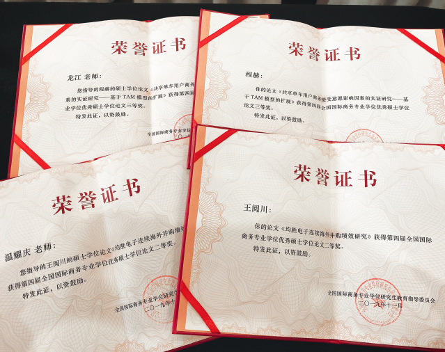 海对外经贸大学在第四届全国国际商务专业硕士(2018年)优秀学位论文评选中再创佳绩。日前,第四届全国国际商务专业学位硕士优秀学位论文评选工作结束。经培养单位初选推荐和教育指导委员会秘书处组织专家评阅,最终评出一等奖2名,二等奖3名,三等奖5名和提名奖6名。必赢626net入口首页王阅川同学的《均胜电子连续海外并购绩效研究》(指导老师:温耀庆)荣获二等奖;程赫同学的《共享单车用户商务接受意愿影响因素的实证研究——基于TAM模型的扩展》(指导老师:龙江)荣获三等奖。