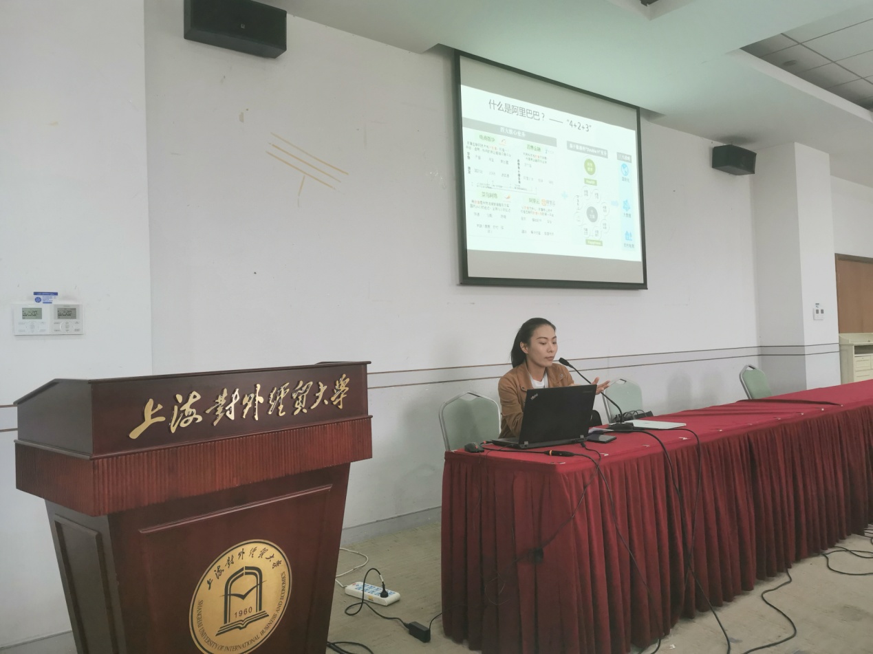 11月13日下午2点半, MIB行业精英系列讲座第二弹——“跨境蓝海新机遇”在信息楼530举行,本次讲座由国际经贸学院MIB教育中心联合阿里巴巴国际事业部主办,主讲嘉宾是来自阿里巴巴集团国际事业部的王蔚老师,她具有民企和国企的丰富工作经验,是阿里巴巴集团高级招育小二,上海首保讲师,企业EAP执行师,擅长商家培育及团队打造。王老师首先播放了阿里巴巴20周年年会上《唐小菊穿越记》视频,视频中介绍了阿里巴巴创业的过程中,突出了几个重要时间点和地点:如湖畔花园、1999年刚创立,2002年给网站起名,2016年首届双十一。随后,她简要介绍阿里巴巴集团的“4+2+3战略”。其中4指四大核心业务,包括电商,金融,菜鸟物流,阿里云。阿里巴巴国际站从事B2B业务, 而速卖通从事B2C业务. 2指阿里健康和文娱产业,如阿里投资的热门电影《哪吒》。3指国际化,大数据,农村电商。