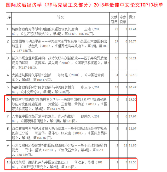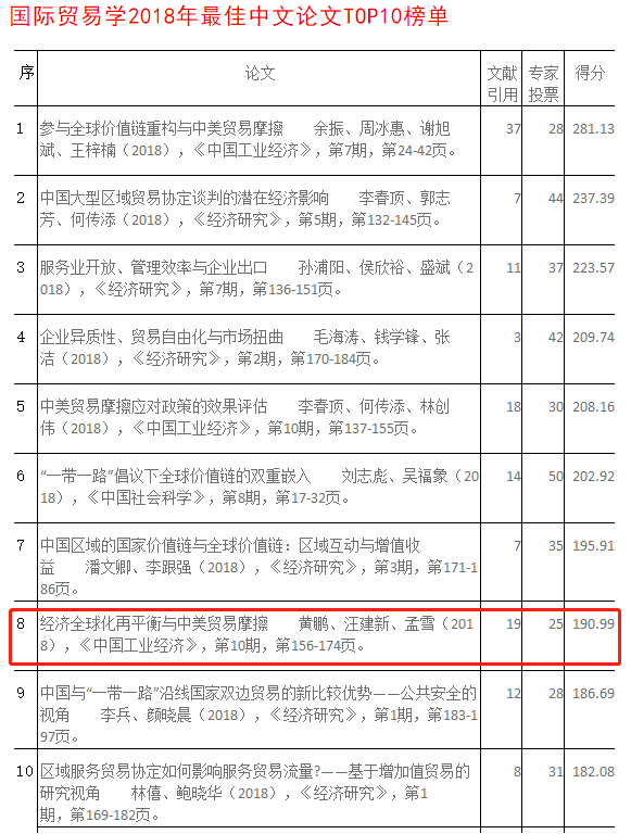 日前,由《世界经济年鉴》编辑部组织评选的世界经济学十佳(TOP10)论文榜单发布,我院两位教授,何欢浪、汪建新的论文分别入选。
