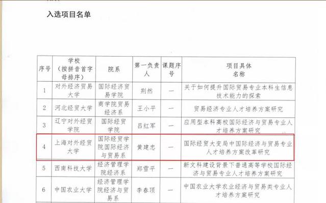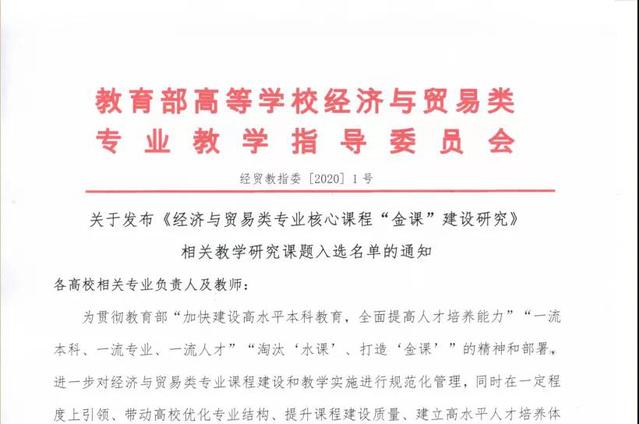 近日,经教育部高等学校经济与贸易类专业教学指导委员会组织专家评审,必赢626net入口首页国际经济与贸易专业申报的“国际经贸大变局中国际经济与贸易专业人才培养方案改革研究”、“建设贸易强国背景下《中国对外贸易》金课建设研究” 和“建设贸易强国背景下《国际贸易实务》金课建设研究”3个项目入选“经济与贸易类专业核心课程金课建设研究”资助。此次发布的研究课题是教育部经济与贸易类专业教学指导委员会首批“金课”建设项目,来自全国28所本科院校的32个项目入选。