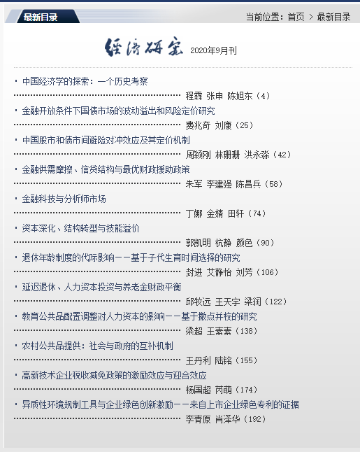 近日,国际经贸学院青年教师王丹利博士作为第一作者撰写的论文“农村公共品提供:社会与政府的互补机制”发表于《经济研究》(2020年第9期)。《经济研究》创办于1955年,由中国社会科学院经济研究所主办,中国社会科学院主管,是国内公认的最具有学术声望的权威期刊之一。