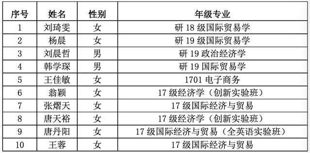国际经贸学院通过个人申报和组织审核的方式遴选“改革开放故事”学生宣讲团成员10名,名单如下: