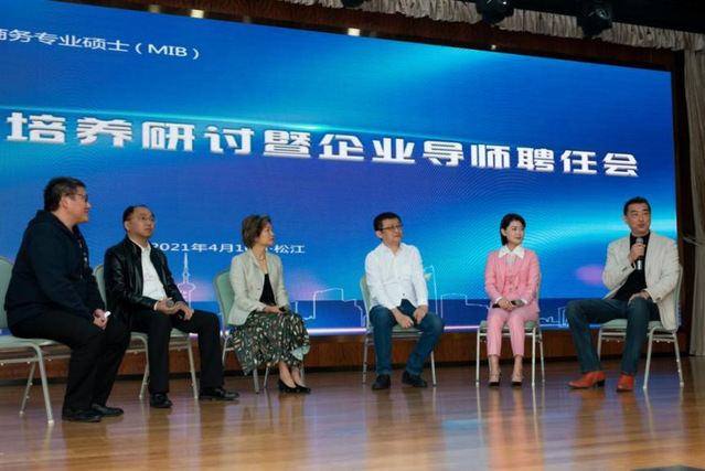 2021年4月16日,国际经贸学院国际商务专业硕士(MIB)高层次人才培养研讨暨企业导师聘任会在松江校区图文信息楼507隆重举行,议程包括企业导师聘任仪式、MIB人才培养研讨和企业导师与学生交流等三个环节。来自各行各业的34名企业导师代表出席本次会议,国际经贸学院领导班子、校内导师代表和学生代表参与会议,会议由国际经贸学院副书记邵雅菁主持。