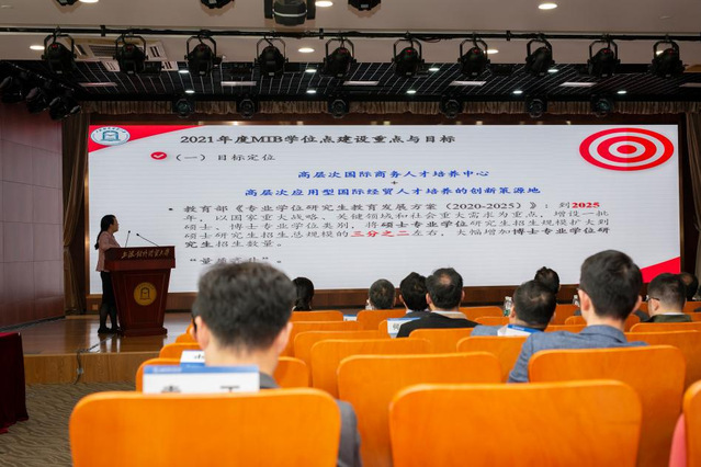 围绕高层次国际商务人才培养,学院党委副书记、副院长金泉代表MIB教育中心向与会嘉宾汇报了MIB人才培养定位与近三年学位点建设特色与成效,并重点交流了2021年度MIB学位点建设目标和关键任务,指出数字经济时代正在通过在不同节点之间建立更多的联系而创造出更大的价值,而经贸学院长期以来也坚持打开门办教育,通过不断加强与社会各界的互动交流,培养接地气的国际商务高层次人才。由此,学院的MIB人才培养需要顺应时代潮流,坚持以立德树人为根本任务,实现在更高层次和更高质量上的新突破。