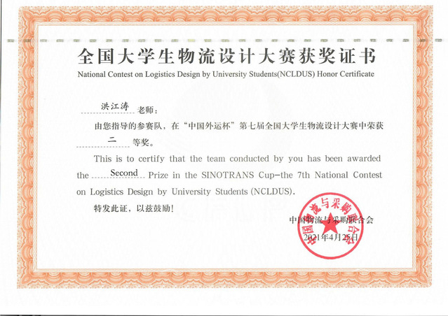 2021年4月22至25日,第七届全国大学生物流设计大赛决赛在北京物资学院举行,本届大赛由中国物流与采购联合会主办,中国外运股份有限公司赞助并提供案例支持。经过两天激烈的角逐,大赛决出一、二、三等奖。上海对外经贸大学国际经贸学院陈梦妙、洪江涛和李欣等老师指导的上海对外经贸大学HollyHigh队(队员:黄敏婕、戴萌、潘喆、沈英姿、张潇月)荣获二等奖,继续保持了必赢626net入口首页在该项赛事上的骄人战绩。