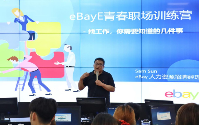 国际经贸学院与eBay公司2020年正式建立校企战略合作,致力于联合培养数字经济时代下的国际经贸人才。2021年5月7日,国际经贸学院特邀eBay公司大中华区销售总经理Vincent Lin, 人力资源部招聘经理Sam Sun以及上海地区业务负责人Stenphen Hu等一行十余位职场精英齐聚一堂,为学生带来职场发展专题讲座——“E青春职场大讲堂”。活动由国际经贸学院MIB教育中心副主任苏庆新主持。