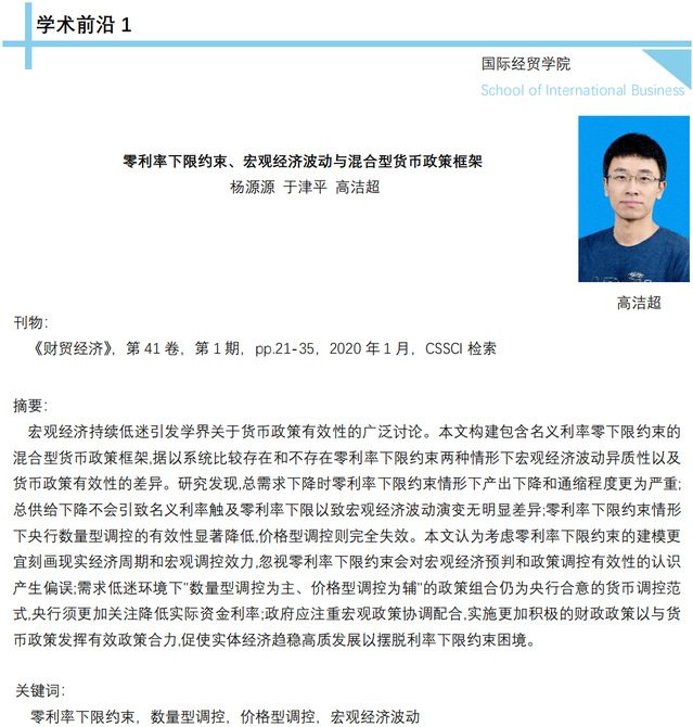 【学术前沿】高洁超:零利率下限约束、宏观经济波动与混合型货币政策框架