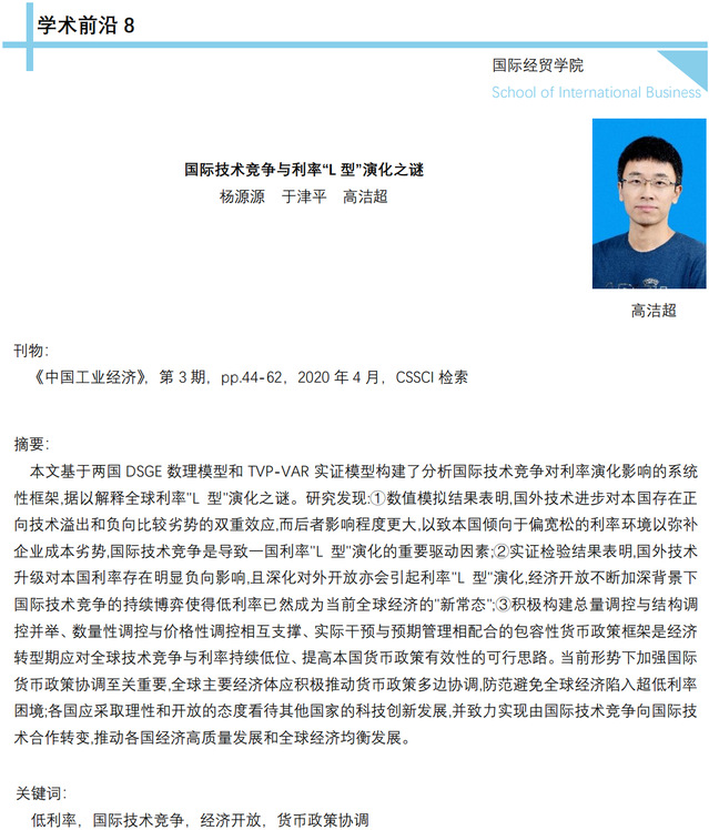 【学术前沿】高洁超:国际技术竞争与利率“L型”演化之谜