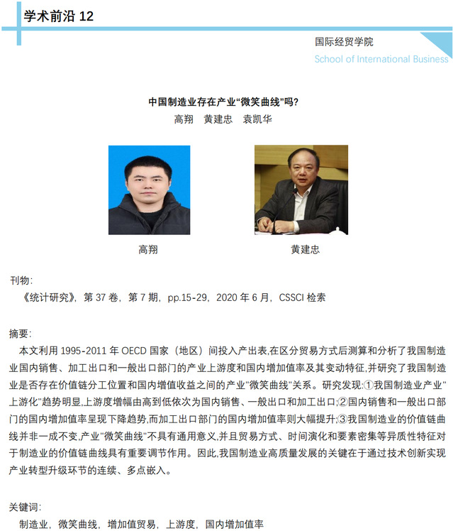 【学术前沿】高翔,黄建忠,中国制造业存在产业“微笑曲线”吗