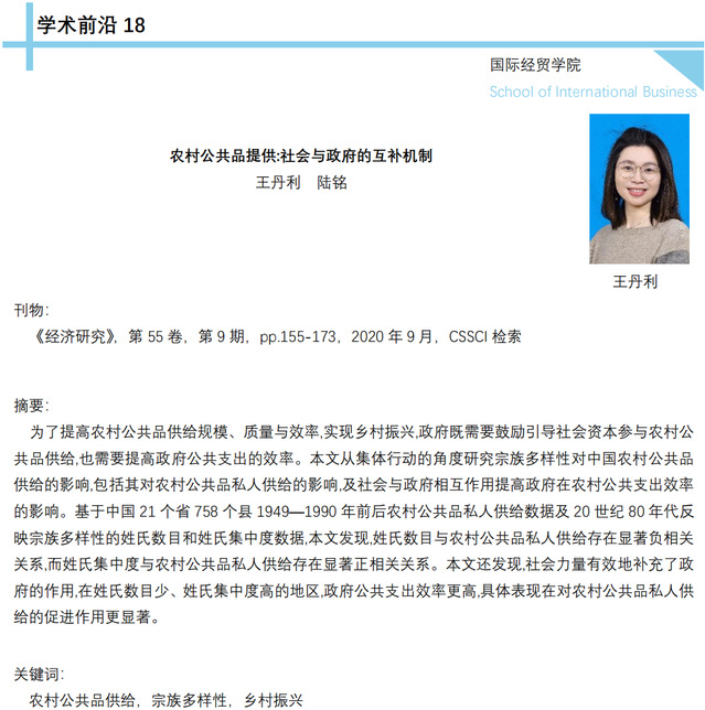 【学术前沿】王丹利,农村公共品提供:社会与政府的互补机制