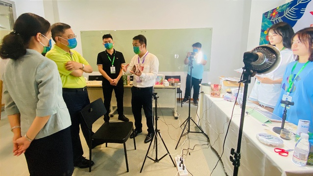 在本次主题展期间,国际经贸学院“一路羚先”学生实践团队与上海来伊份公益基金会共同发起实施了“乡村振兴从心出发”公益助农直播活动。彭沉雷一行莅临直播现场,详细了解直播产品信息及活动组织细节,指出由大学生来做有关乡村振兴的公益活动是很有意义的一件事,勉励同学们要努力把这个好项目用心坚持做下去。
