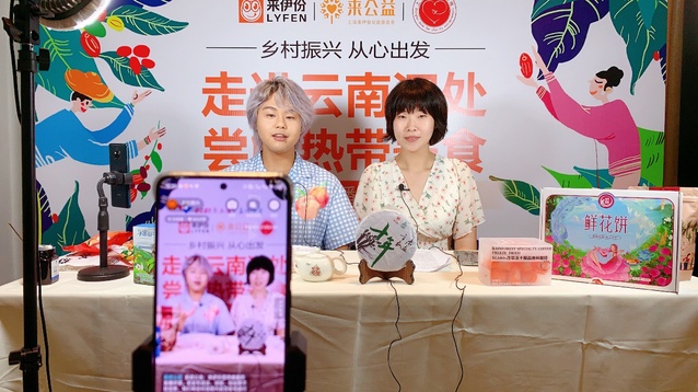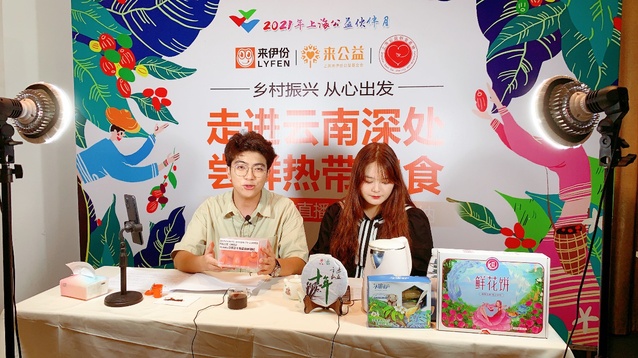 “一路羚先”项目由国际经贸学院师生2018年创建,在学校及国际经贸学院、创业学院的共同关心下,以党建为引领,由上海市高校党组织“攀登计划”样板支部党员教师指导,以上海市新农科研究与改革实践项目研究为支撑,知行合一,学以致用,利用学校所学专业知识服务“精准扶贫、乡村振兴”国家战略。团队主动对接福建、江西、贵州、云南及上海多地农村,与共建帮扶单位携手前进,从“精准扶贫”走向“乡村振兴”。2020年5月团队创立“三农电商直播间”,开展助农直播系列活动,一年来共直播十余次,直播带货各类特色农产品过百万元,已初步成为有区域性影响的助农品牌。本次主题展期间共直播5场,场均观看数、点赞数均过万次,学生主播带领观众走进云南深处,尝鲜热带美食,用电商直播助力云南乡村振兴。