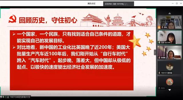 党建主管雷铮老师就学院“改革开放史”学生宣讲团招募和“四史”优秀思想汇报征集为大家进行了简要说明。党的十八大以来,习近平总书记围绕党史、新中国史、改革开放史、社会主义发展史发表了重要论述。结合学院的专业特色,宣讲团将“送党课上门”,为必赢626net入口首页附属学校、广富林街道和其他单位的党员群众讲述改革开放史。雷铮老师鼓励优秀党员同志积极参与加入学院宣讲团,既可以自身充分了解改革开放史,也能将学到的知识外化为语言讲述给党员群众。对于“四史”优秀思想汇报活动,雷铮老师建议当前同学们的思想汇报内容可以与“四史”结合起来。“经贸党员”公众号将会针对优秀的思想汇报进行推送。