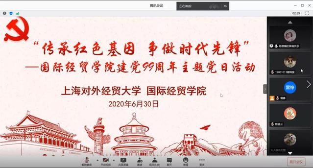 为迎接建党节,庆祝建党九十九周年,进一步提升学院党建工作,激励广大党员和青年学生坚定理想信念、争做时代先锋,发挥党员先锋模范作用,国际经贸学院党委于6月30日晚7时开展了“传承红色基因,争做时代先锋”国际经贸学院建党99周年主题党日活动。学院党委组织员陈雅媚、党建主管雷铮与全院学生党员、入党积极分子、入党申请人共同探讨如何坚定理想信念、增强支部凝聚力和创新党建工作。活动由党委组织员陈雅媚主持。