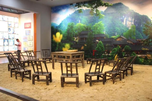 通过导游介绍及观看简介墙上经贸大调研小组了解到十八洞村组建了苗绣、成志牧业、猕猴桃、果桑种植、油茶种植、山羊养殖、养猪、辣木树种植等9个农民专业合作社,因地制宜确定了劳务经济、特色种植、特色养殖、苗绣、乡村旅游5大产业,形成产业扶贫合力,实现从“输血”到“造血”的根本转变。