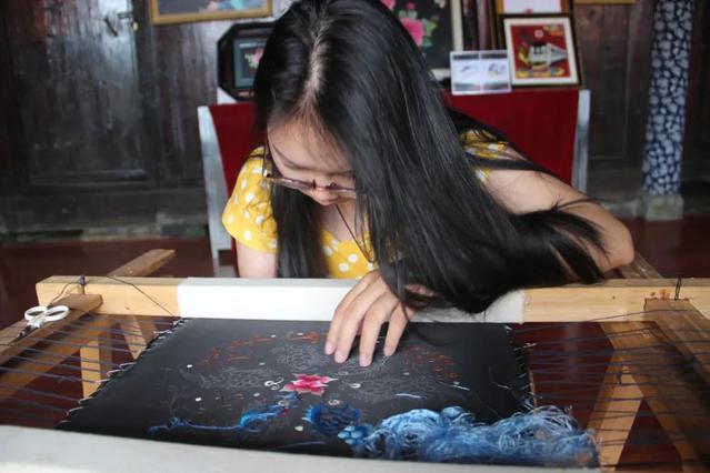 在石顺莲女士的指导下,调研小组的成员们也纷纷亲身体验了苗绣。