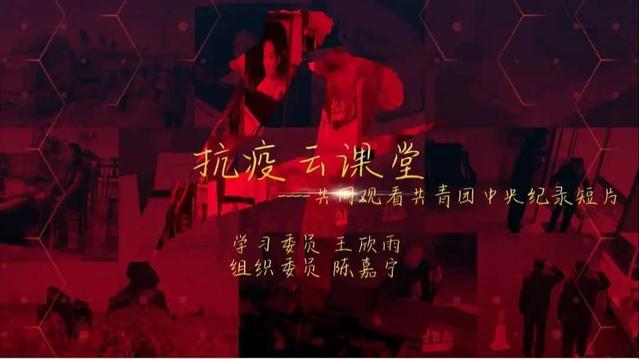最后一个版块是“抗疫云课堂”。我们线上播放了组织委员陈嘉宁同学和学习委员王欣雨同学为大家精心挑选的来自共青团中央的两个疫情专题的短片。