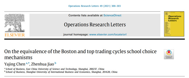 我院焦振华教授2021年在Journal of Mathematical Economics, Social Choice and Welfare等国际学术期刊围绕资源配置中的机制设计等问题发表4篇科研论文。