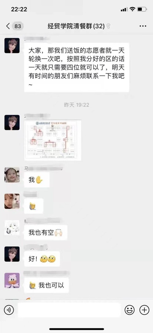 我报名成为了送餐志愿者,主要负责清真餐的配送,很开心自己能在学校需要的时候帮到忙。每次送晚餐时,大家都会在群里表示对志愿者的感谢,看到这些就觉得能够为大家服务是件很开心的事。昨天大家还提议每位吃清真餐的同学也轮着做志愿者,这次疫情虽然给我们生活带来了很多不便,但在每个人的努力下,我们的生活依然井然有序,充满了爱与温暖。作为志愿者,我更加体会到学校的不容易,作为吃清真餐的一员,我也很感谢学校对我们的特殊关照,即使吃清真餐的同学不多,学校却没有忘记我们有忌口,每天会专门送来热乎的清真餐,伙食也一天比一天好,分量足,搭配也均衡,真心地感谢学校对我们的关心。