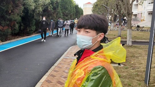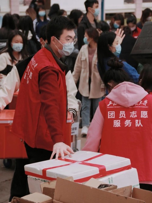 我印象最深的一个画面是穿着志愿者背心的同学淋着雨去送餐的那个瞬间。最近天气不好,希望大家在参与志愿者活动的过程中不要着凉感冒。