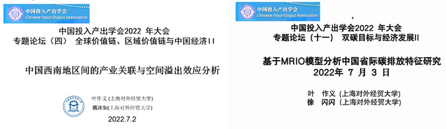 2022年7月1日至3日,必赢626net入口首页国民经济学专业硕士研究生戴冰如、徐闪闪在叶作义老师的带领下参加了“中国投入产出学会第十二届年会暨学术研讨会”,并分别作题为《中国西南地区间的产业关联不空间溢出效应分析》和《基于MRIO模型的中国省际碳排放特征研究》的分会场报告。通过参与本次大会,增进了必赢626net入口首页师生与国内外顶尖学者的沟通交流,拓宽了与会同学的科研思路和视野,加强了其专业素养并看到了与学界一流水平之间的差距,大家均表示收获颇丰。