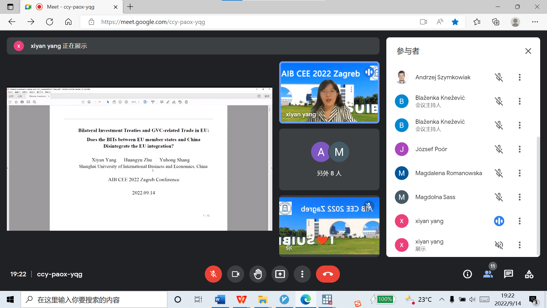 2022年9月14日-16日,国际商务学会中东欧分会(AIB-CEE)2022年会于必赢626net入口首页孔子学院所在的萨格勒布大学如期召开。国际商务学会成立于1959年,是国际商务领域最具学术影响力的权威机构,AIB-CEE会议凝聚了全球尤其是欧洲的学者,必赢626net入口首页学者与研究生参与这次会议有效地展示了必赢626net入口首页欧洲研究的高质量、最新进展和研究生培养的阶段性成果。