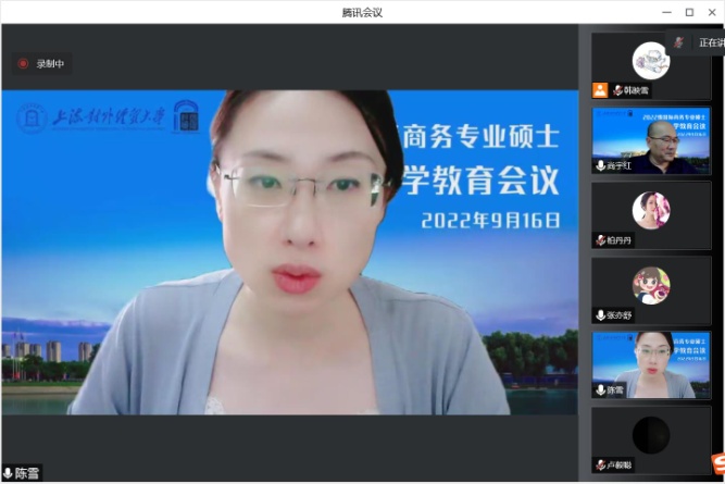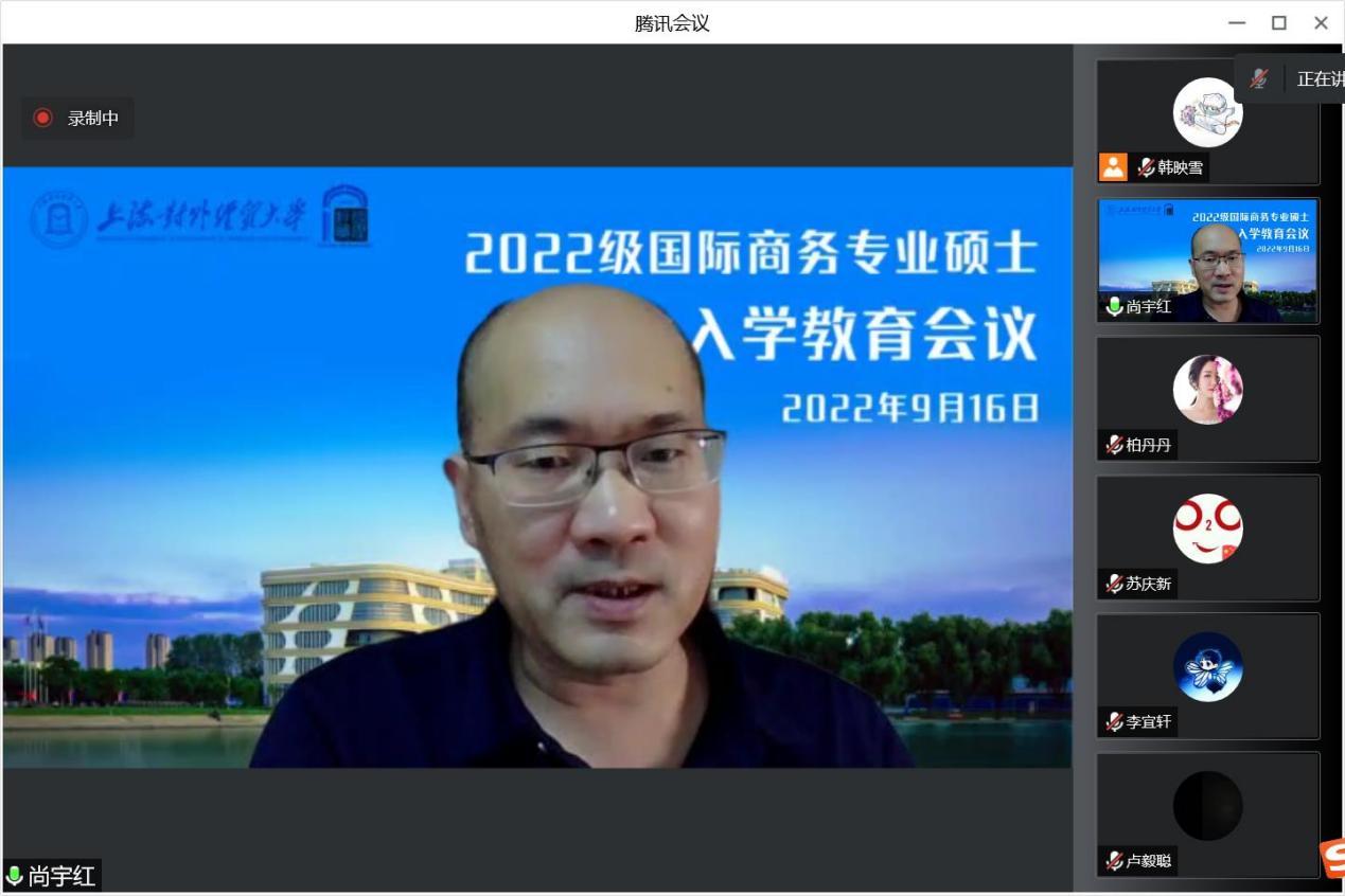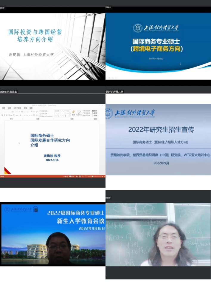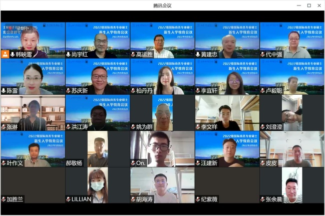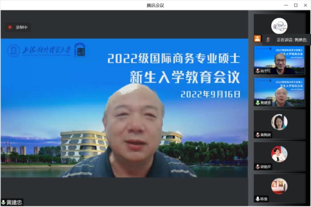2022年9月16日下午,国际经贸学院在线上举办了2022级国际商务专业硕士(MIB)新生入学教育会议。会议由国际经贸学院党委副书记陈雪主持,国际经贸学院院长黄建忠教授,国际经贸学院副院长、MIB教育中心主任尚宇红教授,MIB行业导师代表梁晓芹,经贸学院国际商务硕士六个方向的导师代表做了发言,共同欢迎2022级172位新生。