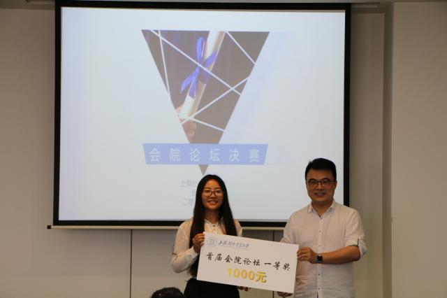 首届会院论坛面向全校研究生征文,本次论坛共收到学生投稿34份,经专家盲审有10份论文进入决赛。决赛设选手答辩陈述、评委提问、教授总结三个环节。最终,会计学院2014级王瑜琳的《监督的机构投资者、剩余损失与公司价值研究》一文受到评委的一致好评,以最高分荣获首届会计论坛一等奖。范雅文、戴游等同学的论文分获二、三等奖。会计学院党委书记谈华为本届论坛总结致辞,希望同学们能恪守学术道德,坚持学术道路,营造良好的学术氛围。