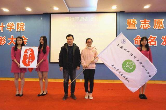 谈华为会计学院志愿者服务队命名揭牌并授旗,“景行”二字语出《诗经·小雅》中“高山仰止,景行行止。”,彰显了每位志愿者崇高的品德以及无私奉献的精神。表彰大会在国会1601班朗诵的《长征组诗》中圆满结束。