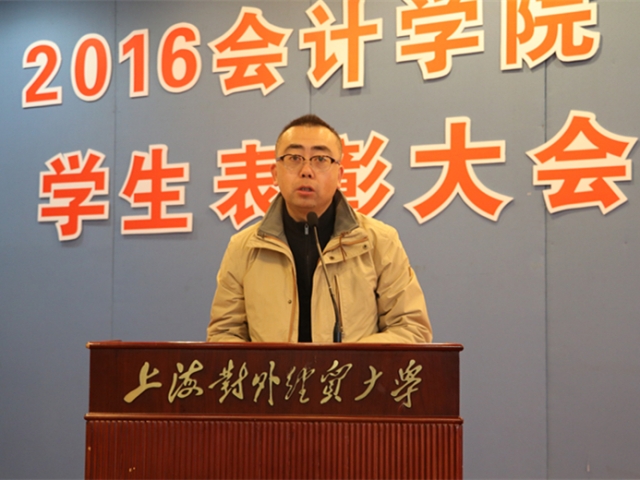 严大龙在会上做了讲话,他首先对会计学院获奖集体和个人表示祝贺,肯定了会计学院在各项学生工作中所取得的优秀成绩。希望受到表彰的同学要继续坚定理想信念,做勤奋学习的示范者和积极实践的引领者,砥砺品质和修养,积极践行社会主义核心价值观;同时也希望每一位会院学子在大学时代都能有所获、有所得,不忘初心,砥砺前行,做个可爱、可信、可贵、可为的会院人。