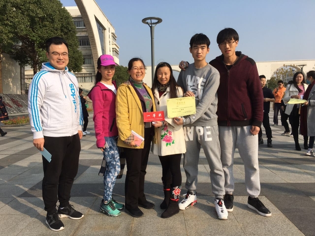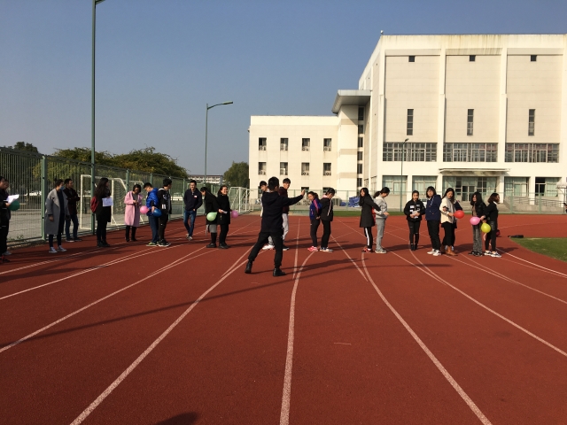 随着谈书记一声令下,比赛正式拉开了帷幕。本次比赛是从集合地学校大操场出发,首先是就地进行第一个任务气球三明治即每组派两名成员背夹气球走完十米赛道并在终点踩爆气球,完成后通过猜谜语找出第二个任务点篮球场进行“投五个羽毛球入框”,完成后再通过猜谜语找出第三个任务点学思楼门洞前进行“抽指令摆造型拍照”,完成后最后一次通过猜谜语找出第四个任务点六百万进行“高山流水”,即小组成员用道具组成轨道接力将乒乓球运送至指定小桶内即算完成。第四个任务完成后,各小组先后来到了最后位于南广场的任务点完成“摸石过河”,即各小组的5成员排成一列,边铺垫子边接力前进到达指定位置。